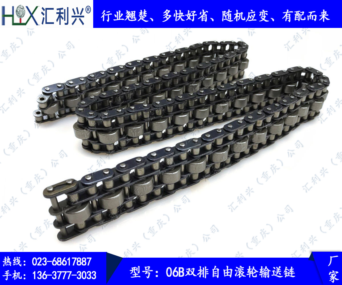 产品名称:06B双排自由滚轮输送链 产品型号:06B双排自由滚轮输送链