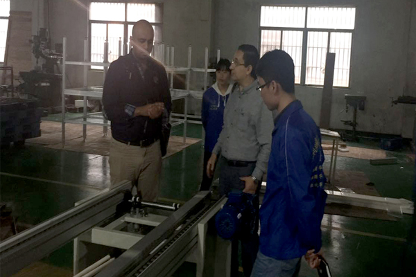 酒香不怕巷子深,好配件不论国籍。沙特阿拉伯客户莅临开云官方端网站东莞工厂商洽滚筒输送机等订单相关事宜,外贸部罗紫荣经理及相关人员陪同交流.