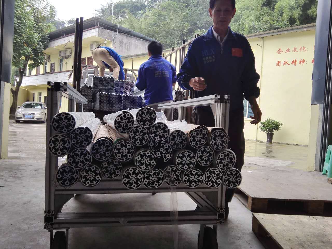 4040R铝型材4根为一组合摆放在小推车上,组合形成的花纹甚是美观。(团队的力量,尤为庞大)