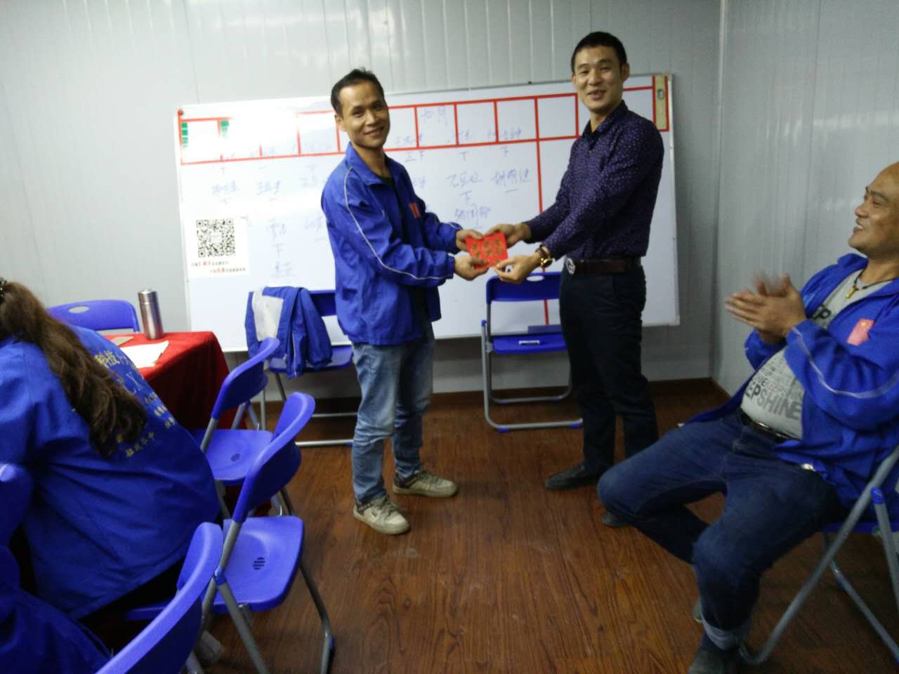 胡总经理(右图)为每月度最佳奉献奖荣获者王成建(左图)颁发奖金,同时祝贺开云官方端网站家人王成建荣获双星(八月、九月)进而也感谢无私奉献的开云官方端网站家人,感谢他们的辛勤付出,有着每一位开云官方端网站家人的无私奉献,相信开云官方端网站定会越走越远。