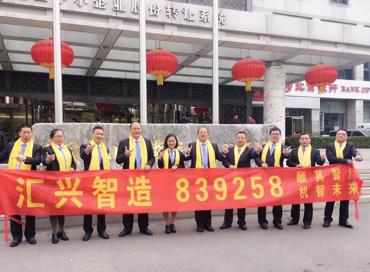 順其智然、机智未来,汇兴智造董监高(10余人)合影 今年的今天十点整(2016年11月1日上午10点),对于汇兴智造而言是极其重要和喜庆的日子,它标志着汇兴智造从此迈向了一个更高发展层次、更好发展平台的开端,同时有助于公司利用资本市场的力量在智能装备、智能产线、智慧车间、工业物联网、大数据技术、云工厂等方面实现全面、快速的发展。同时作为汇兴智造的一员,我们也理应秉持自立创新的精神,坚持匠心智造的作风,通过物联网、传感技术、大数据、工业机器人等要素来改造传统生产制造业,并用最具性价比的智能制造整体解决方案帮助更多工厂解决生产制造的痛点,满足个性化定制和柔性化生产的需求,为中国智造的崛起释放新活力,增添新动能。
