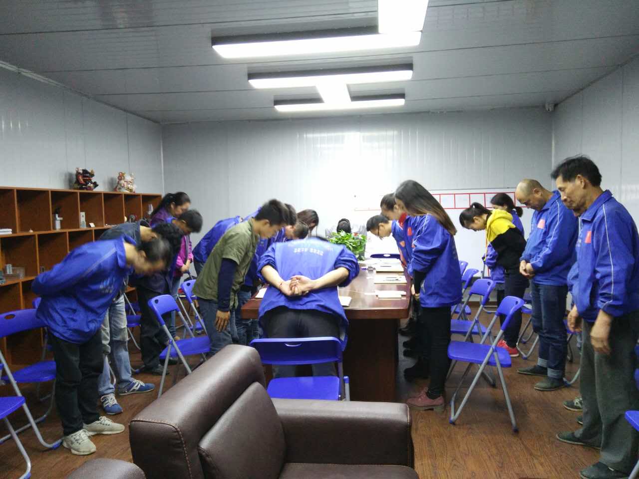 会议召开前夕,全体员工向企业三道(商道、孝道、人道)行三鞠躬