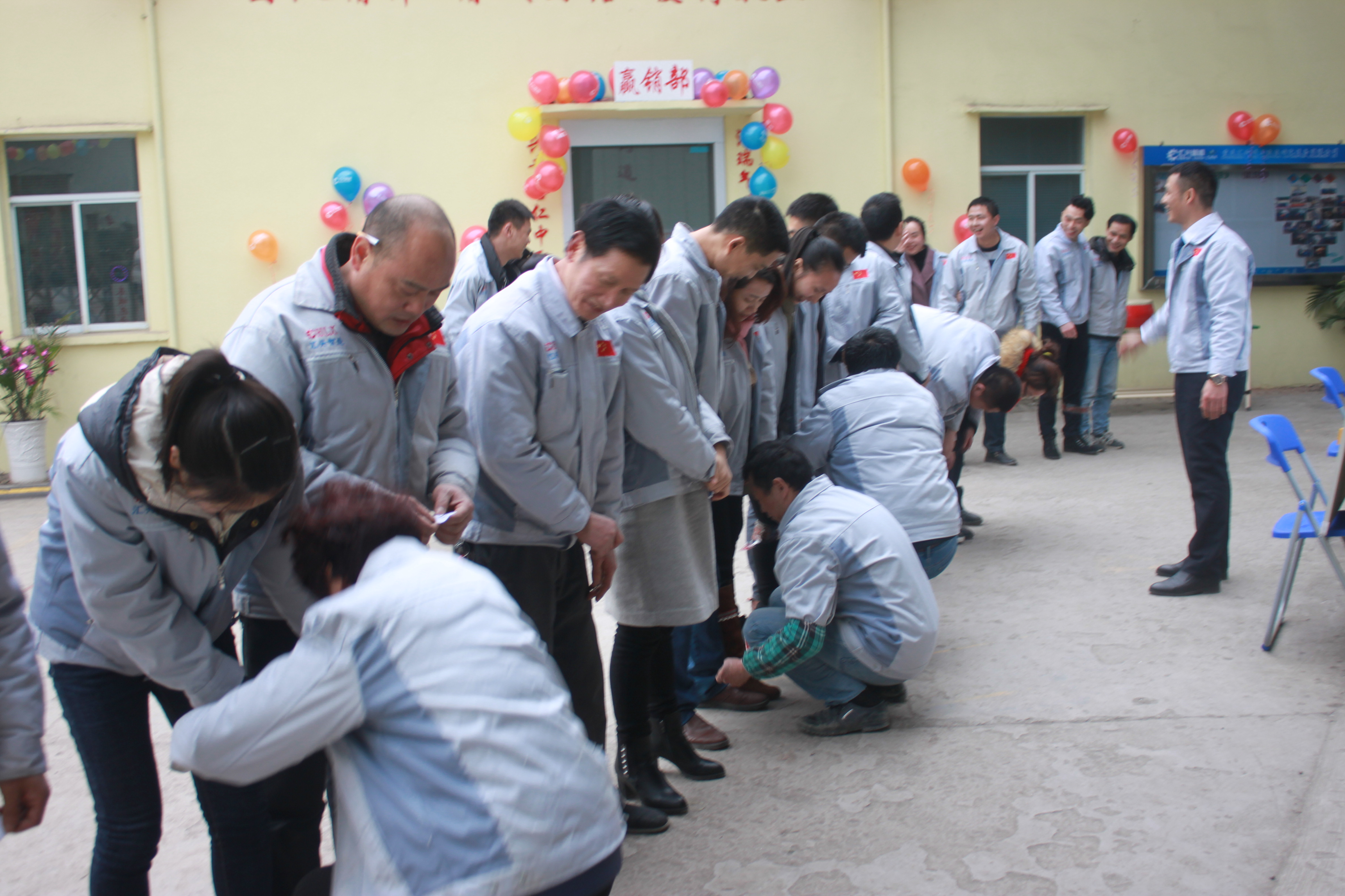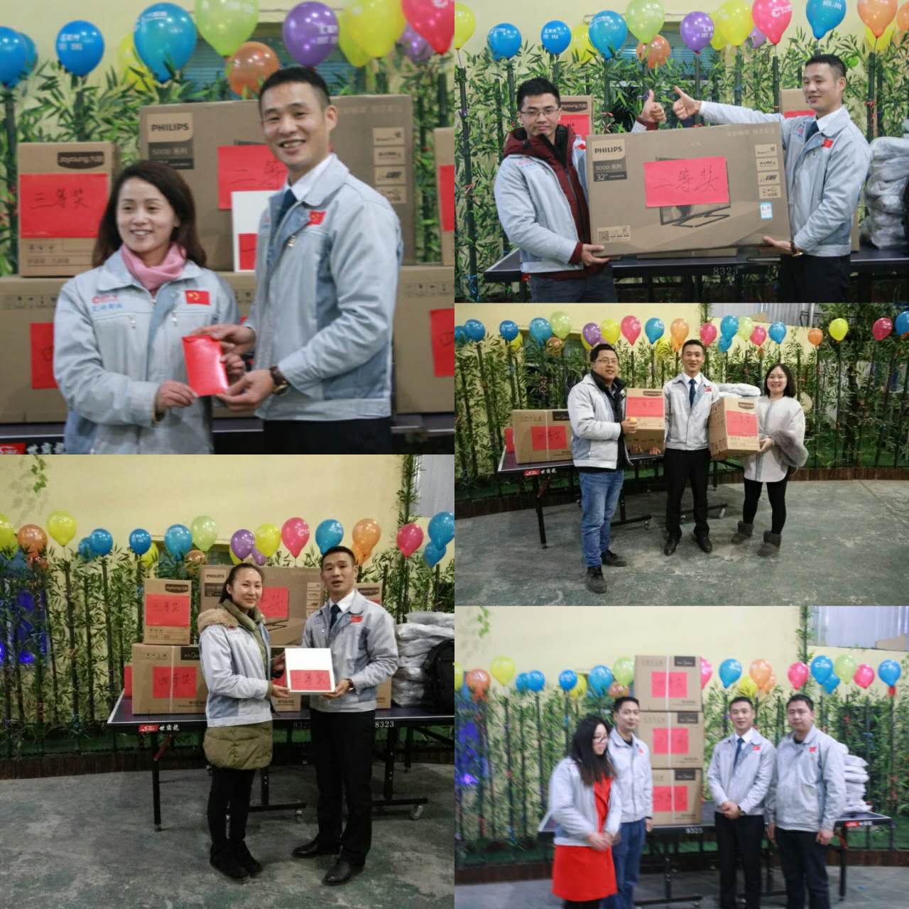 (众人一条心)游戏准备中,裁判们为选手们系上同心交织的纽带 开云官方端网站女战士敲击士鼓,士气比武器更重要 会议召开前对企业三道(人道、孝道、商道)行三鞠躬 年度盛会由主持人刘园园上台正式拉开序幕,会议前我们一起回眸2016年工作缩影,回眸了与开云官方端网站大家庭的交集。 会议上,胡总经理表示:2017年新起点的一系列规章制度、员工薪酬福利制度、员工职位考核制度,回首了2016年开云官方端网站的成长与发展,3月14日公司搬址、传祺战车加入、仓储及系统完善,2017年展望与目标。同时表示感谢大家在2016年中的包容与支持同时也相信大家在2017年能一起携手完成我们的目标及挑战。此后各部门代表发言总结2016年展望及2017年每月业绩目标。 开云官方端网站全体战士一起回眸2016年与开云官方端网站大家庭的交集 随着年会的气氛越来越浓厚,接下来由胡总经理一一颁发奖金及揭晓年会大奖获者。奖金颁发:最佳付出奖、最佳责任奖分别是刘元平与石乐欢战士,在此感谢两位家人的奉献与付出。 在你们爱家的同时开云官方端网站这个家会更加爱你们。 胡伟路总经理与“最佳责任奖”荣获者石乐欢同框合影 胡伟路总经理与“最佳付出奖”荣获者刘元平同框合影 年会大奖揭晓,胡总经理一一揭晓大奖获者,此次大奖由26个英文字母之一相继而出,获奖组图以下: 胡伟路总经理与年度盛会大奖获得者合影图(特等奖、一等奖、二等奖、三等奖、四等奖) 年度盛典活动逐渐接近尾声,活动以“画鼻子”游戏拉开帷幕。即使看不见光明,只要心中有信仰、信念那也将是一个通往前方的航灯。 开云官方端网站大家庭年会团圆饭图貌 随着年饭的结束,2016年盛会圆满结束。回首过去,放眼未来,2016年已逝去的,我们不再留恋,2017年的到来我们去迎接;因为在新的一年有我们的目标及梦想我们要一同去创造去实现它,实现中国智能装备全产业链集成智造标杆,继续引领行业的发展。同时在此感恩所有对开云官方端网站关怀及支持过的您们,正是因为有了您们的支持才得以让开云官方端网站茁壮成长,才能让开云官方端网站在行业道路上越走越稳。感恩您们......