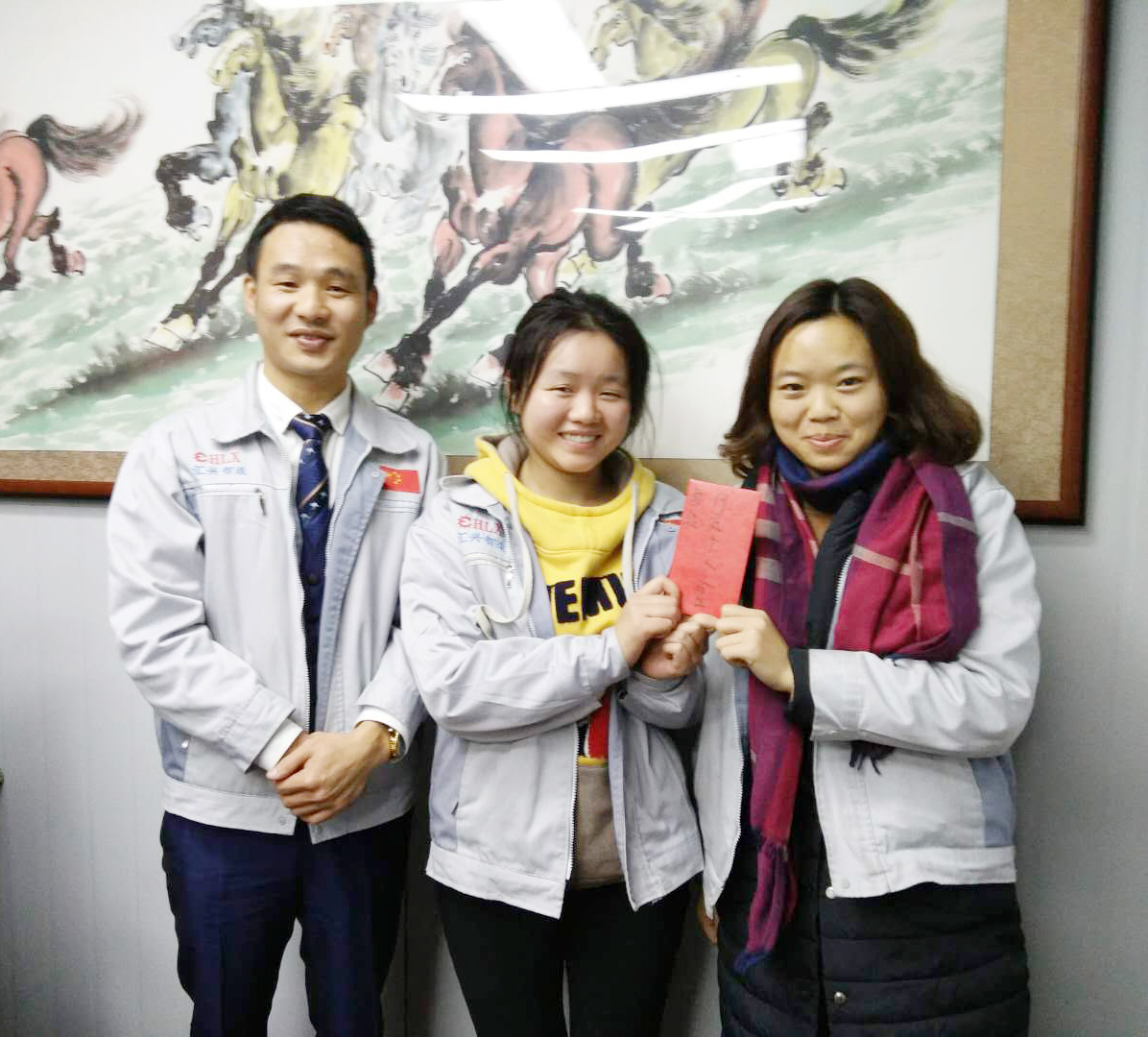 长风破浪会有时,直挂云帆济沧海。12月21日晚,我司全体人员在开云官方端网站学校召开十一月份月度会议,会议进场依次由自我价值估秤及签到入场,由张副总主持。 全体员工观看公司相关视频及聆听开云官方端网站之歌 全体人员宣导企业理念并向企业三道(人道、孝道、商道)行三鞠躬 会上,首先依次例行对每月度最佳部门及个人的选举及颁发奖金;其次胡总经理发表讲话,表示到2017年12月28-30日进行年度盘点,然后谈到公司前进的步伐、队伍的壮大,并表示大家在一起努力工作是难能可贵的,同时进一步谈到2018年度员工相关福利事宜等。最后张副总作相应总结,谈到公司在大家共同的维护及努力下,更加的规范并表示相信大家在后面的工作中会更加的努力。 月度部门物控部主管徐财华(图左)与胡总经理(图右)同框合影 月度之星胡前敏、姜英(图右)与胡总经理(图左)同框合影