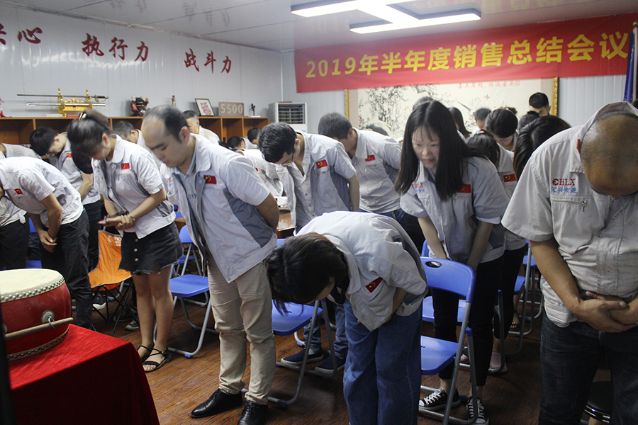 大会共计五项议程。会议第一项议程,企业文化展示。全体汇兴人整肃衣冠对汇兴人倍加推崇的“三道文化”(孝道、商道、人道)郑重地鞠躬,庄严宣誓企业愿景:“成为全球领先的智能自动化产业链集成服务商”,企业精神“用情做人、用心做事”及企业使命。随后二位核心高管击士气鼓,士气比武器更重要,鼓声震天,士气倍增。