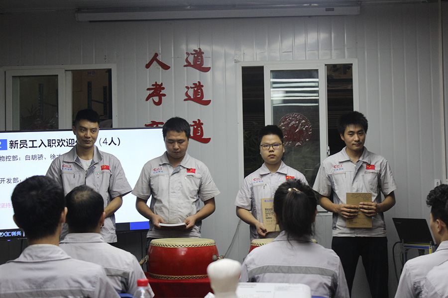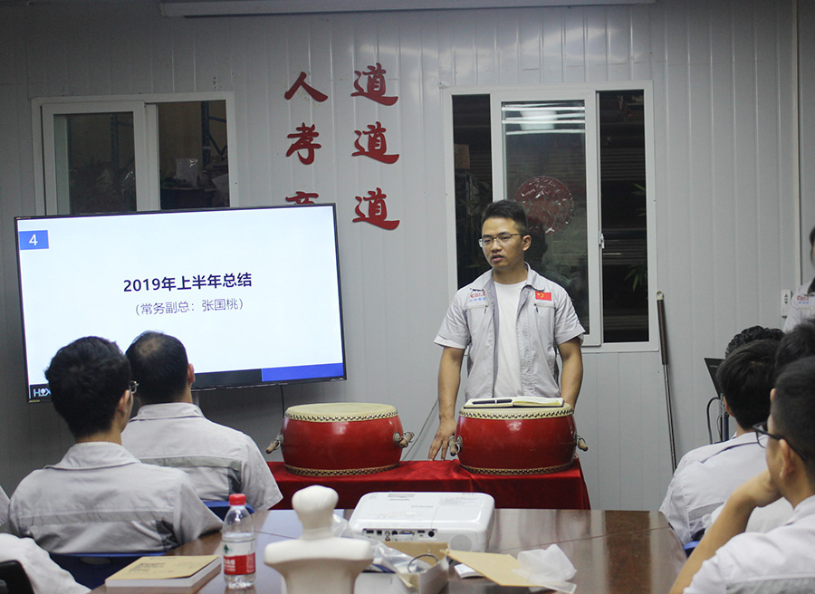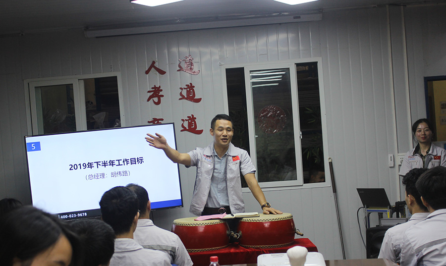 会议第二项议程,新员工入职欢迎仪式。为公司注入了新的血液及新的活力,本次新入员工有物控部及开发部的家人,在此希望他们在自己的岗位上发光发力,为公司贡献自己的一份力量,同公司一起共前进,由常务副总张总为我们新员工颁发纪念品。 会议第三项议程,表彰仪式。为更好的带动员工的工作积极性,公司领导为上半年度表现突出的员工及部门分别颁发了“奉献奖、进步奖、优秀部门奖”,对上半年数据的统筹做出努力的家人给予奖项鼓励,并号召全体员工向表现优秀、贡献杰出的团队和个人学习。 会议第四项议程,张国桃副总作2019年上半年工作总结。会上,张副总首先针对上半年整体工作情况对各部门工作进行了点评,对上半年取得成绩给予了充分的肯定,其次在肯定各部门工作的同时也指出各部门存在的不足,而且强调工作中不仅要出工还要出活,同时要求各部门人员要加强各部门间的协作,并以百分百的工作热情投入到工作中,努力做好本职工作,完成企业年度目标。 会议第五项议程,胡伟路总经理作2019年下半年工作目标。首先,胡总强调,在当下竞争如此激烈的环境下,每个人都要有危机意识,每个人都应积极主动去落实好工作,坚持做个一个实干型的汇兴人;二、着重围绕“三心两力”准则,具备耐心、信心、决心的理念,有执行力、战斗力去完成我们的年度目标;三、坚决剔除对于工作散漫、不积极不上进的做事风格;四、针对公司存在的短板实施新的符合公司的合理措施;五、针对现有的规章制度将进一步完善、规范;六、实施考核、监管制度的工作流程,达到实际性效率的增长。同时进一步强调,在下半年工作中,全员应无条件执行公司大小决策,全力以赴完成公司年度目标。 最后,在会议结束前,集体观看短片《世界等你开场》,正如短片所说,我相信心之所向,就是我想要的方向,面对梦想,需要的是坚持,同时鼓舞着汇兴人想要成功必须得坚持,想要完成梦想,只有坚持和奋斗,因为这是一个奖励拼搏的时代,想要赢得掌声,必须要努力拼搏。