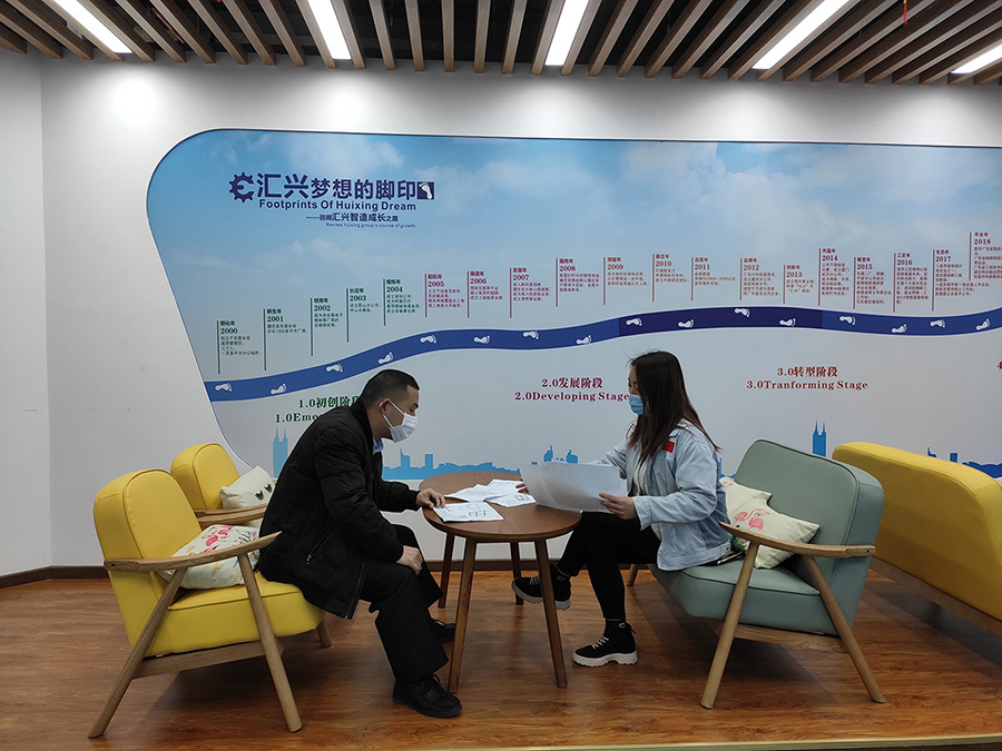 目前复工35人全部各就其位,与时间赛跑,争分夺秒;来来回回穿梭在办公场所内,与同事擦肩而过,穿行的急迫感仿佛疫情早已远去,留下的是这份工作的热情与激情。一个个平凡的身影,在面对疫情前,他们选择了勇敢,选择一路向前;在工作面前,他们选择了担当,用责任诠释着平凡但不平庸的一天,用笑容渲染着每位认真工作的汇兴人。