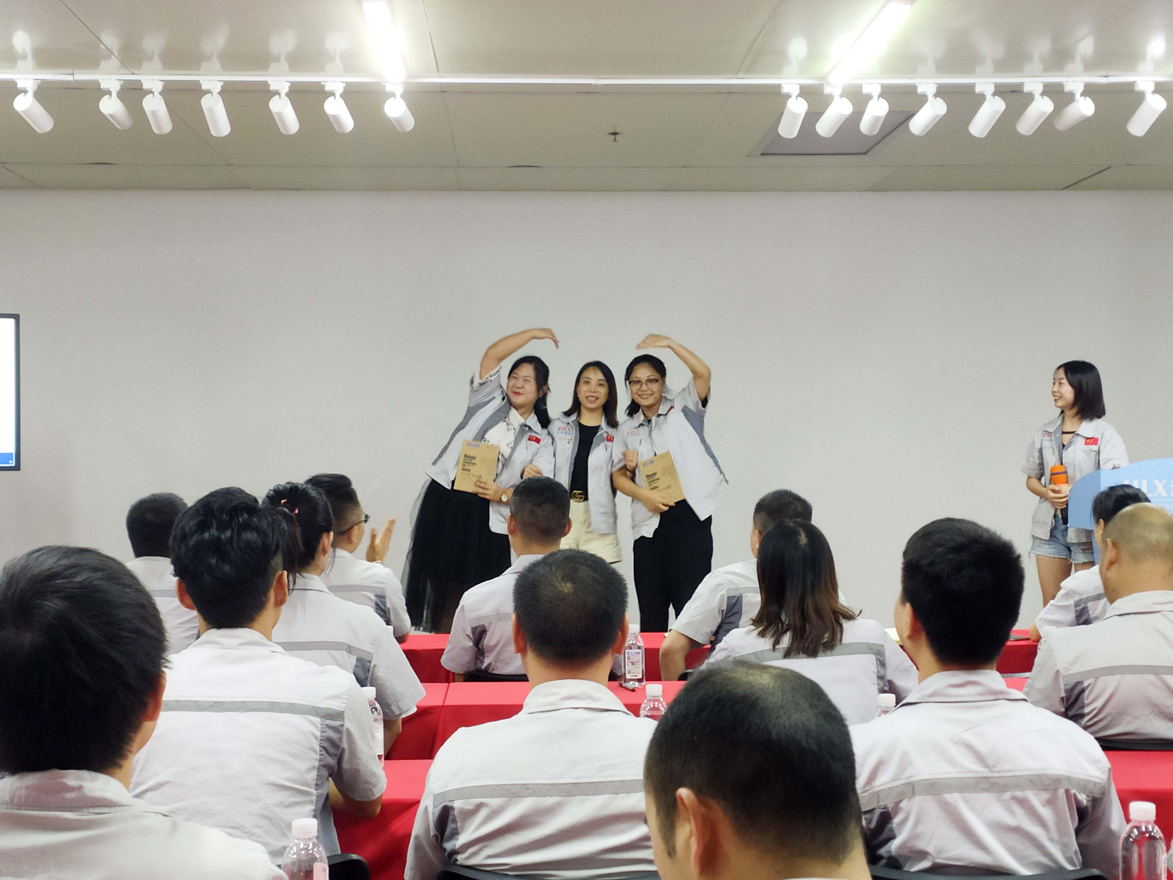 其次,全体员工整肃衣冠,对倍加推崇的孝道、商道、人道郑重鞠躬,庄严宣誓企业愿景:“成为全球领先的智能自动化产业链集成服务商”,企业使命:做受尊敬的好人,造受尊敬的产品,办受尊敬的企业,建受尊敬的平台,企业精神“用情做人、用心做事”,团队精神“忠诚团结、勤奋进取”,工匠精神:创于手、精于工、智于器、匠于心、品于行等。 会议第一项,新员工入职欢迎仪式。由客服部经理石乐欢为新入员工颁发纪念品,希望她们在各自的岗位上积极向上,尽职尽责,并为公司的发展贡献一份力量。