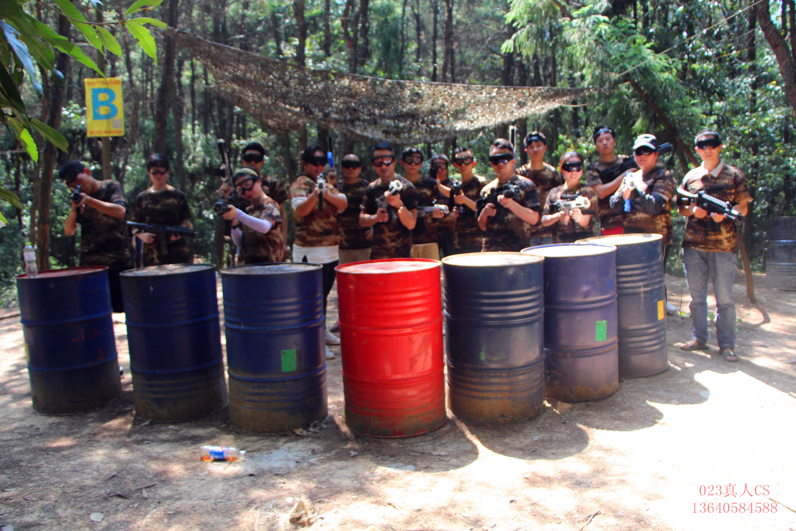在听完教官的安全规范及游戏规则讲解后,一轮轮的真人CS对抗赛就正式开始。随着教官的一声令下,红、蓝双方激战正式开始,一方攻,一方守,每个队员在“战场”上都生龙活虎,大家分工协作、互相掩护配合作战,以小团体的形势展开战术部署,攻击和防守各自明确分工,先锋队员勇冲敌营,队员们激情高涨,进退有度,智勇双全,配合默契。你给我掩护,我助你歼敌,展示了高效一致的执行力和协助配合的团队精神;尽管汗流浃背,也要继往开来,展现出高度的团队合作精神,赛场上不时响起一阵阵欢呼声,活动逐渐进入高潮,两组均颇多斩获,但最终以三轮PK赛制红军获得胜利。经过这次活动大伙纷纷表示会将军人的这种严明的组织纪律务实的工作作风、严肃的工作态度,不怕吃苦、勇于拼搏和创新的精神带到工作中,并尽职尽责的做好本职工作。