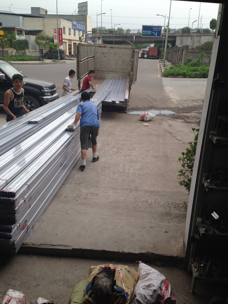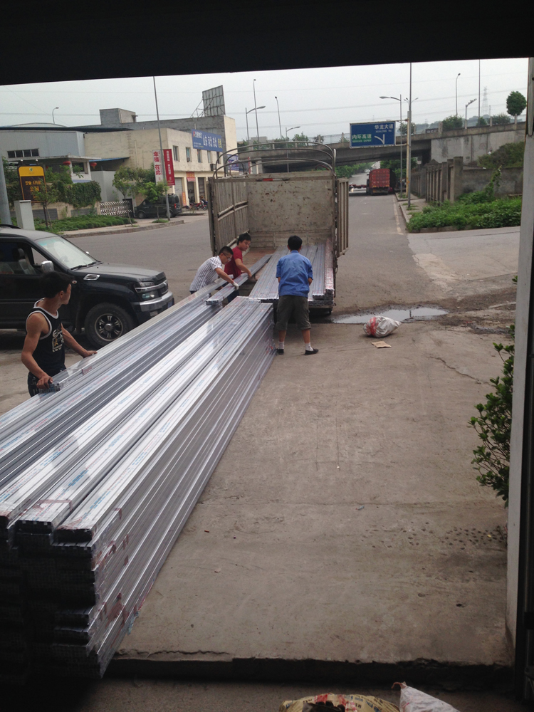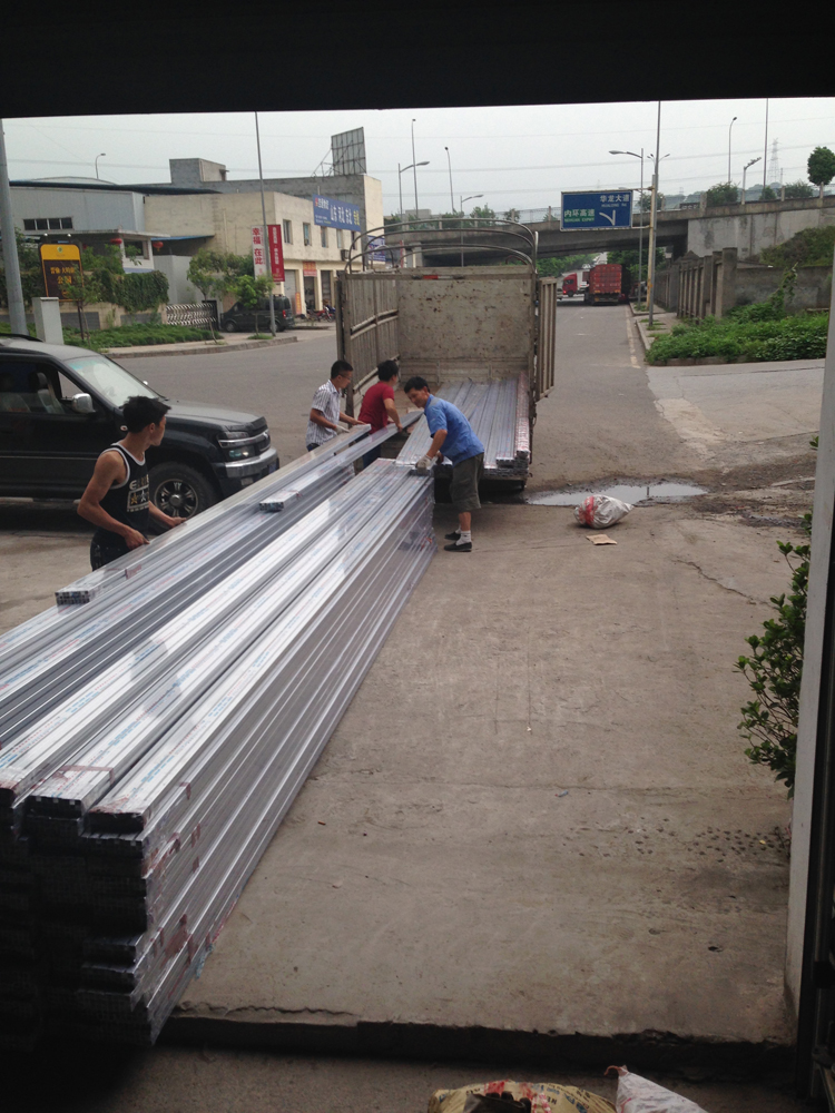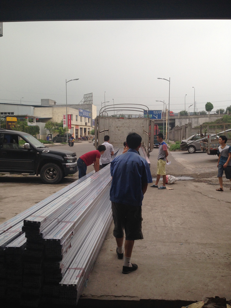 昨日上午,客户订购的5050铝型材到货,上午才卸下货,中午就叫来物流公司,伙伴们以最快的速度把货装上车,为的就是能把产品尽早的送到客户手上
