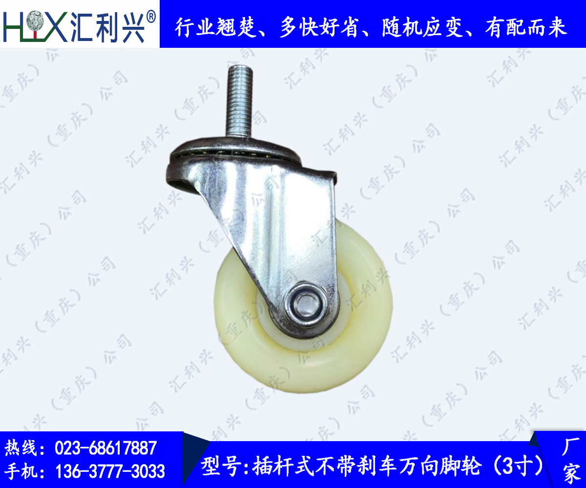 产品名称:插杆式不带刹车万向脚轮(3寸) 产品型号:插杆式不带刹车万向脚轮(3寸)
