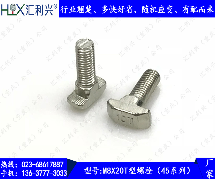 产品名称:M8X20T型螺栓(45系列) 产品型号:45系列